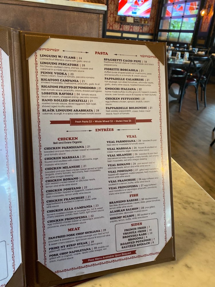 “ If I was just reviewing the pizza this would be 5 stars. The Amalfi pizza is maybe my favorite pizza anywhere so far. But I came today and also got the chicken wings. I specifically asked if they were breaded and the waitress said no so I ordered them. But they came out with a thick breading on them. The waitress asked in the back if they could do them without breading and they can't, which is reasonable, but they told her to tell me that it's just a little flour coating. It was not just a little flour. It was a thick batter. Anyway, no big deal. Mistakes happen. But they just weren't very good either. The breading was soggy, not crunchy. So I would definitely never order the wings again. I ordered the Amalfi pizza again and it still is absolutely phenomenal. So that was good. But after looking through the rest of the menu, I think everything else is just overpriced. And after talking to the table next to me, they weren't too impressed with their entrées either. So my advice is just stick with the pizza. The pizza is absolutely top-notch and it's worth coming here just for the pizza. But I wouldn't come here for anything else. ”